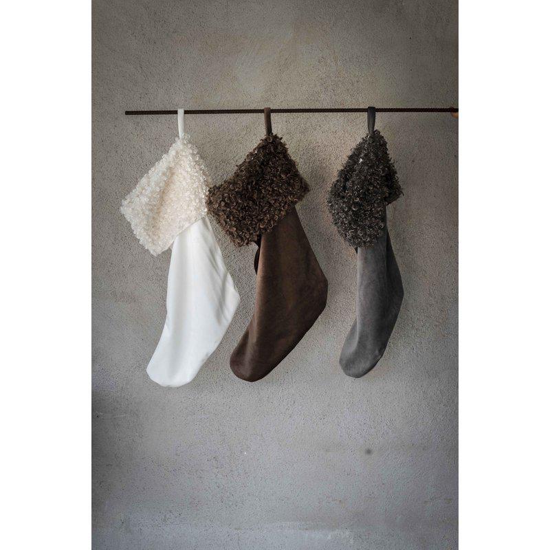 Mysig julstrumpa i underbart mjuk brun sammet med fuskpäls upptill. Perfekt till julkalendern alla 24 dagar. Upphängning består av en ögla.