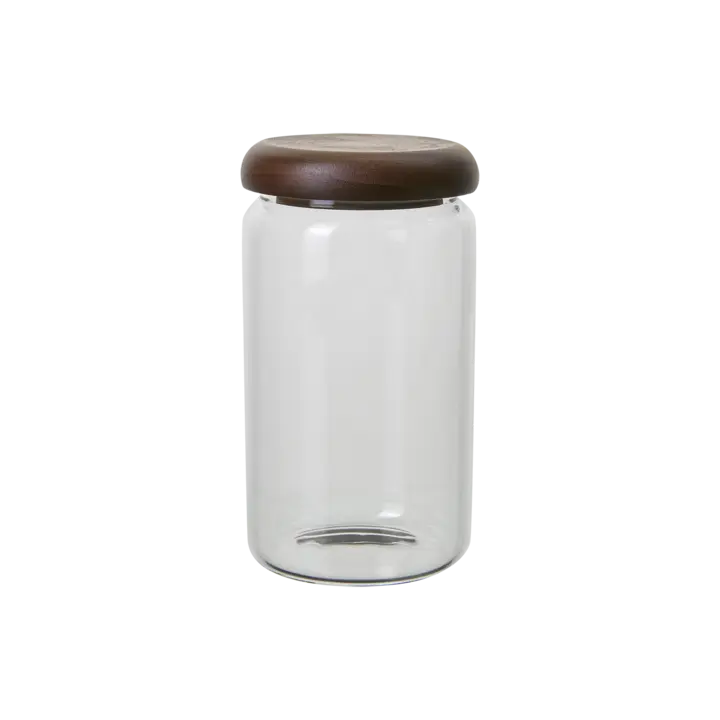 Den stilrena KALLE-burken i klarglas med trälock är en mångsidig och dekorativ förvaringslösning. Perfekt för att organisera skafferiet eller som en snygg detalj på köksbänken. Glasets klara yta gör det enkelt att hålla koll på innehållet, medan trälocket ger en naturlig touch. En perfekt kombination av form och funktion för ett harmoniskt kök.