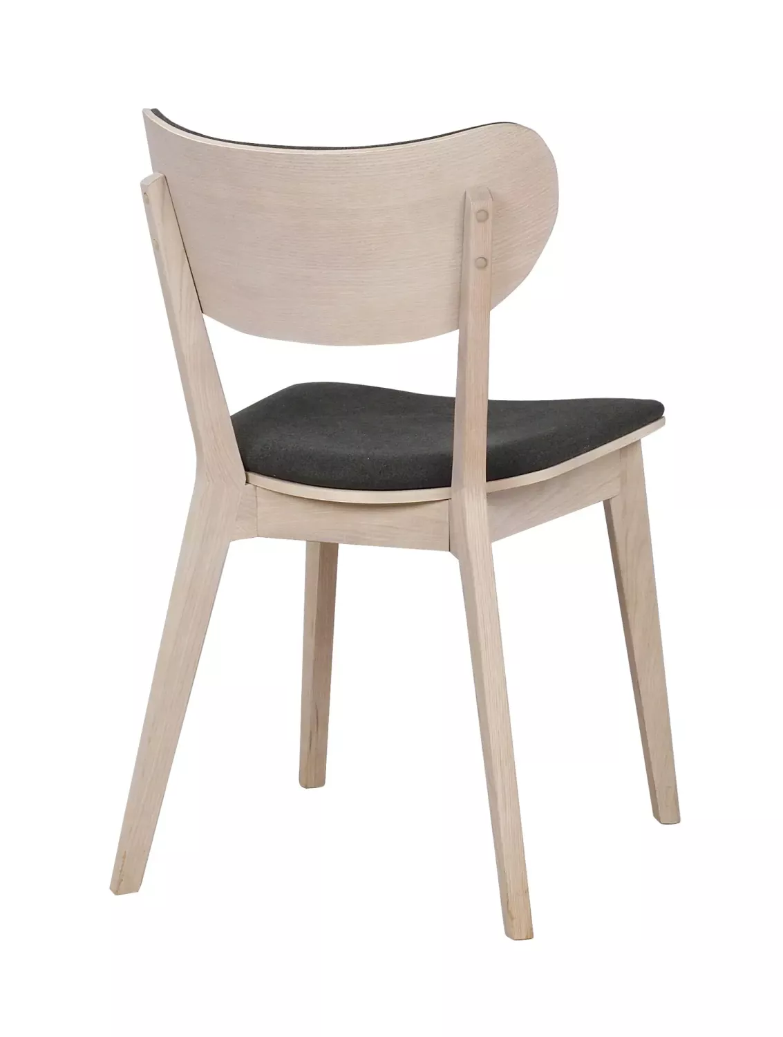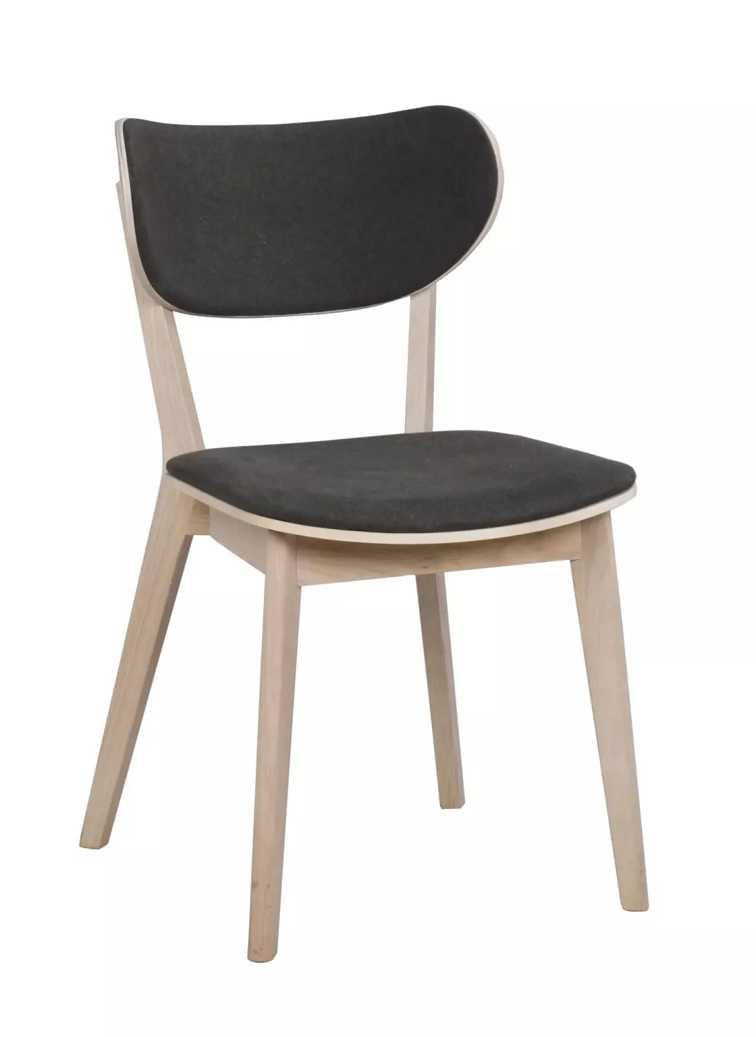Stolen Kato i massiv vitpigmenterad och FSC-certifierad ek andas skandinavisk design och har en stoppad sits och ryggbricka av slitstarkt mörkgrått tyg.
