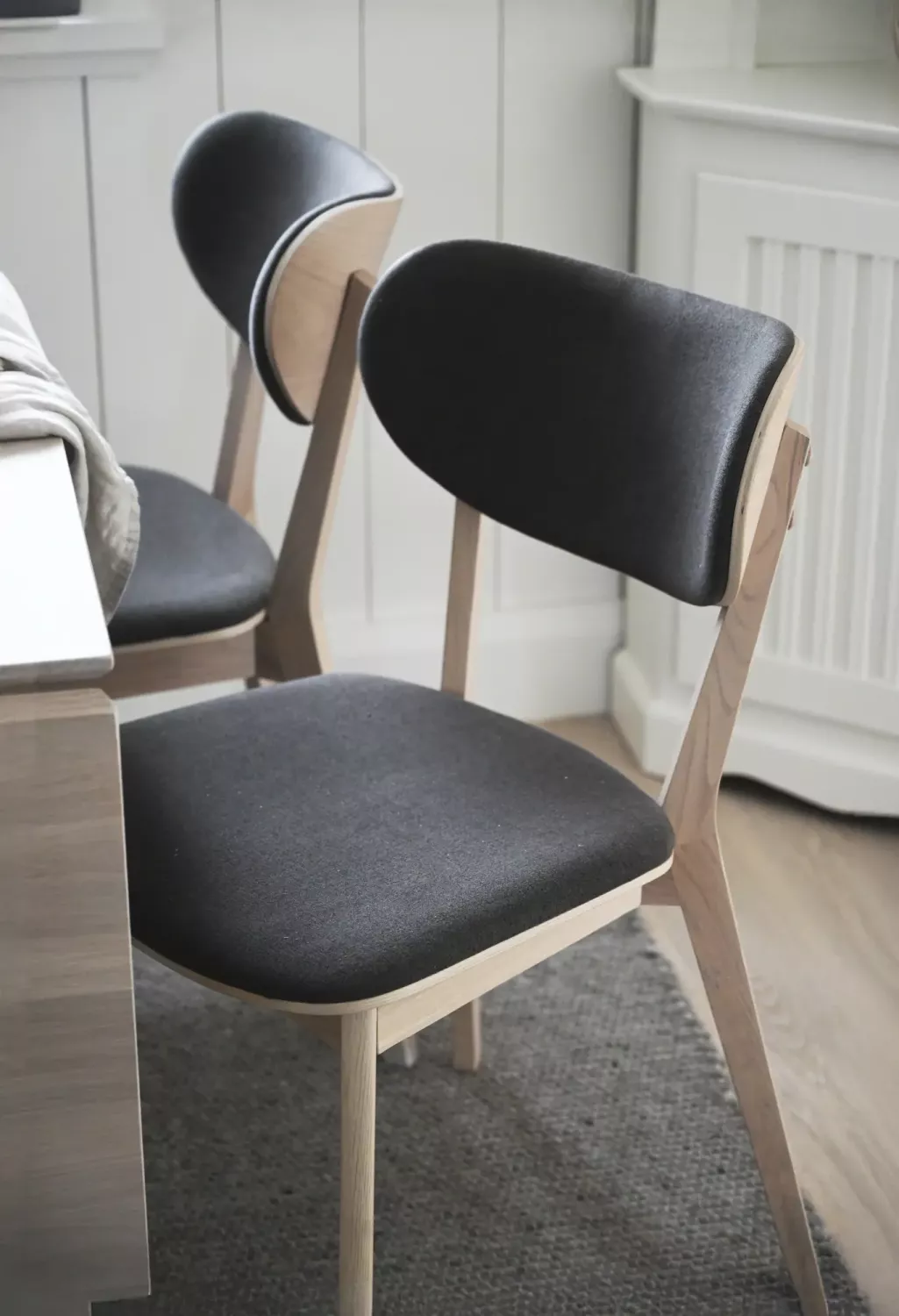 Den rundade ryggbrickan gör trästolen väldigt bekväm, perfekt för matplatsen där stilren design möter skön komfort.