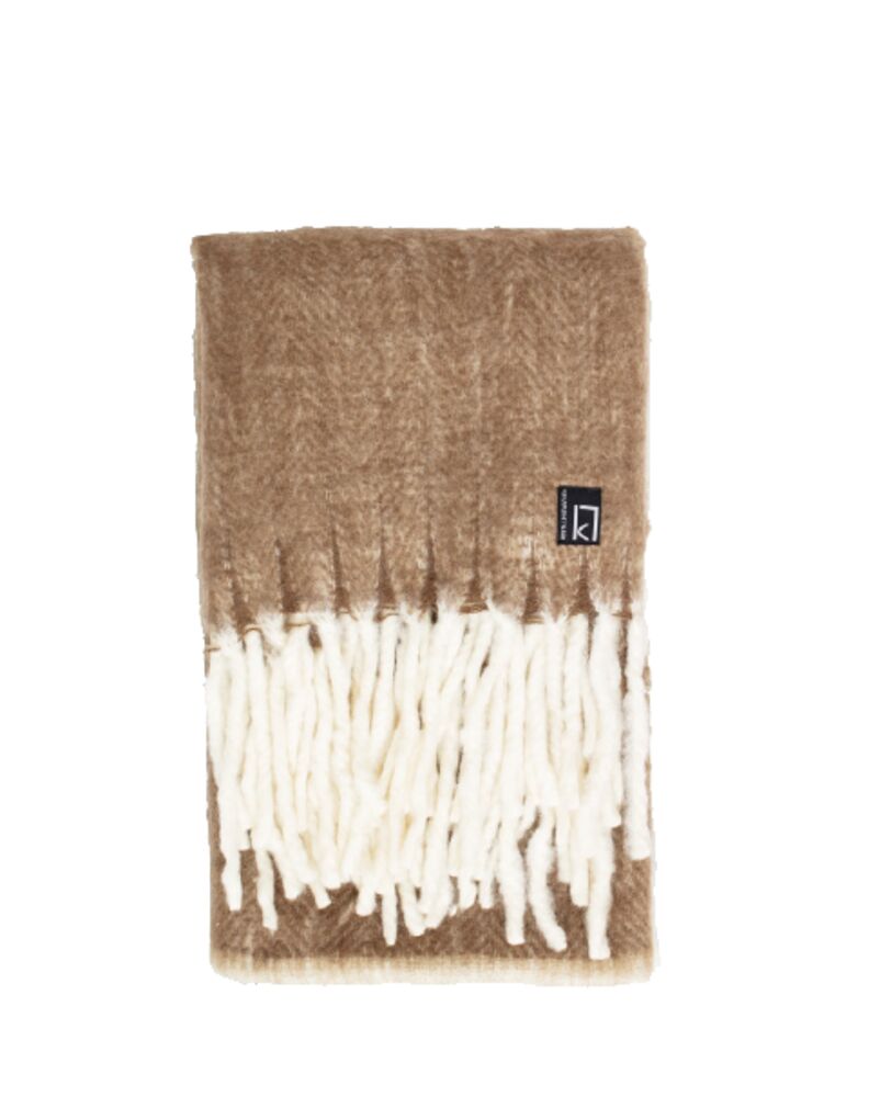 Mjuk och mysig pläd att vika efter behag. Längst ut burriga långa fransar. Passar lika bra som inredningsdetalj, gåva eller svepa om sig en kylig kväll. Kommer här i en fin offwhite och naturbrun färg.