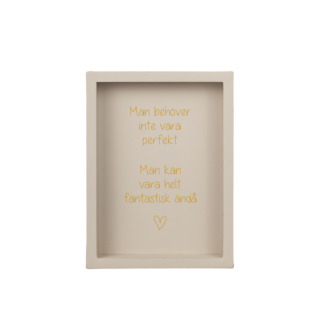 "Man behöver inte vara perfekt, man kan vara fantastisk ändå". Tavlan kommer här i en fin beige färg med guldig text.