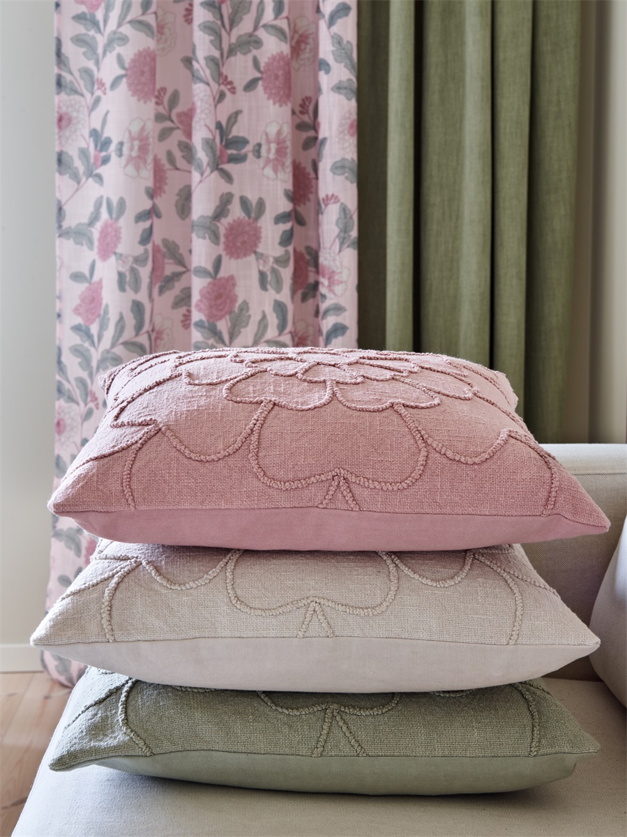 Vackert kuddfodral med detaljer i 3-D effekt likt en blomma. Enfärgad baksida, dold dragkedja på baksidan.