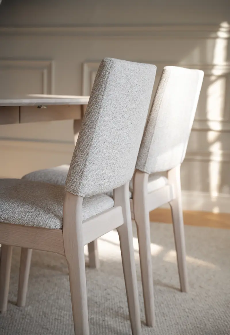 Medford i vitpigmenterad ek och ljusbeige textil är en nätt stol med luftig design och en balans mellan rundade och raka former som ger den ett harmoniskt uttryck. Den stilrena siluetten gör att den passar lika bra i det moderna som i det mer klassiska hemmet. Stolen är en bra match till många matbord men den är särskilt fin tillsammans med matbord från vår Filippa-kollektion.