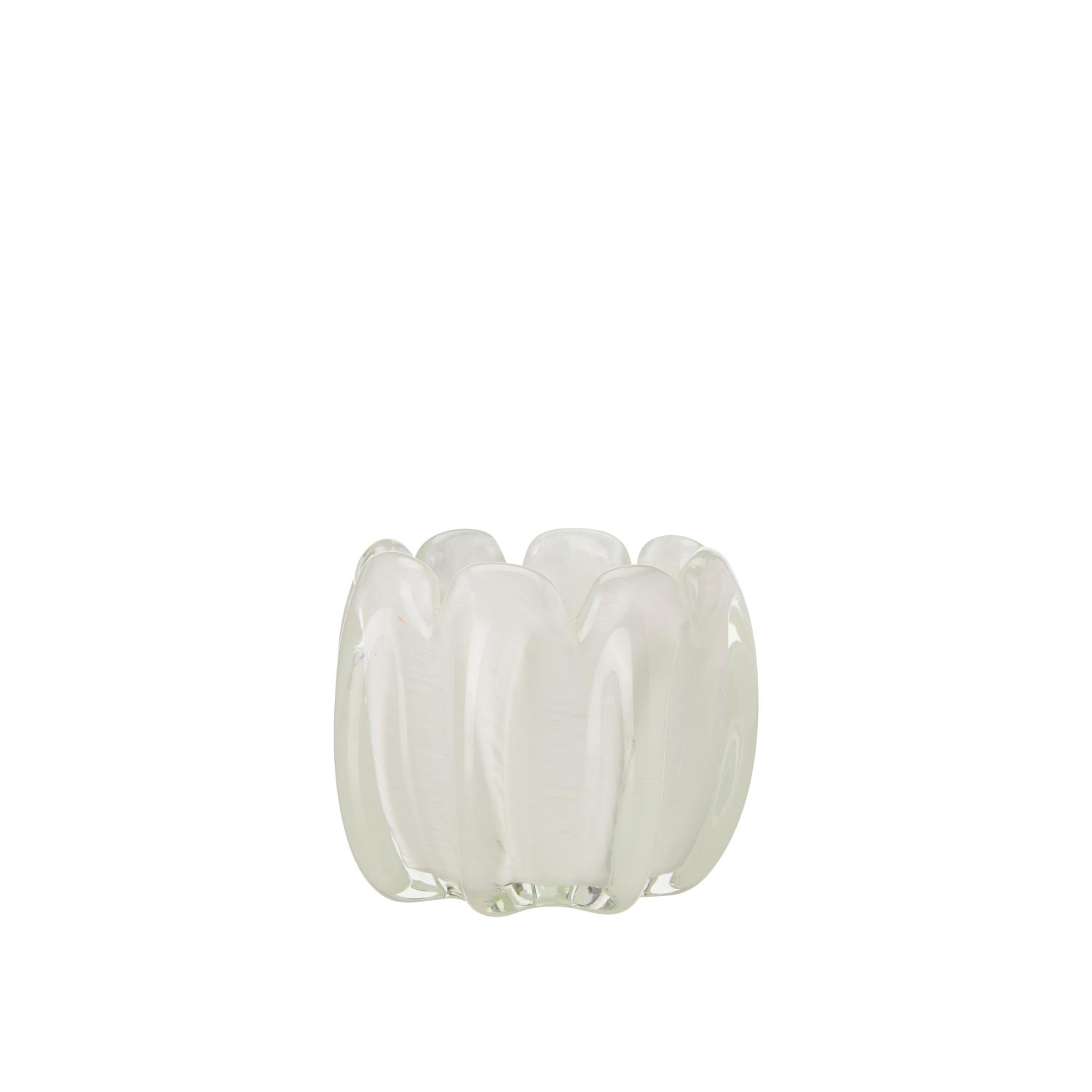 Vackar glaslykta i en fin vit färg med formen av en blomma. Matcha gärna med den större lyktan i likadan färg.
