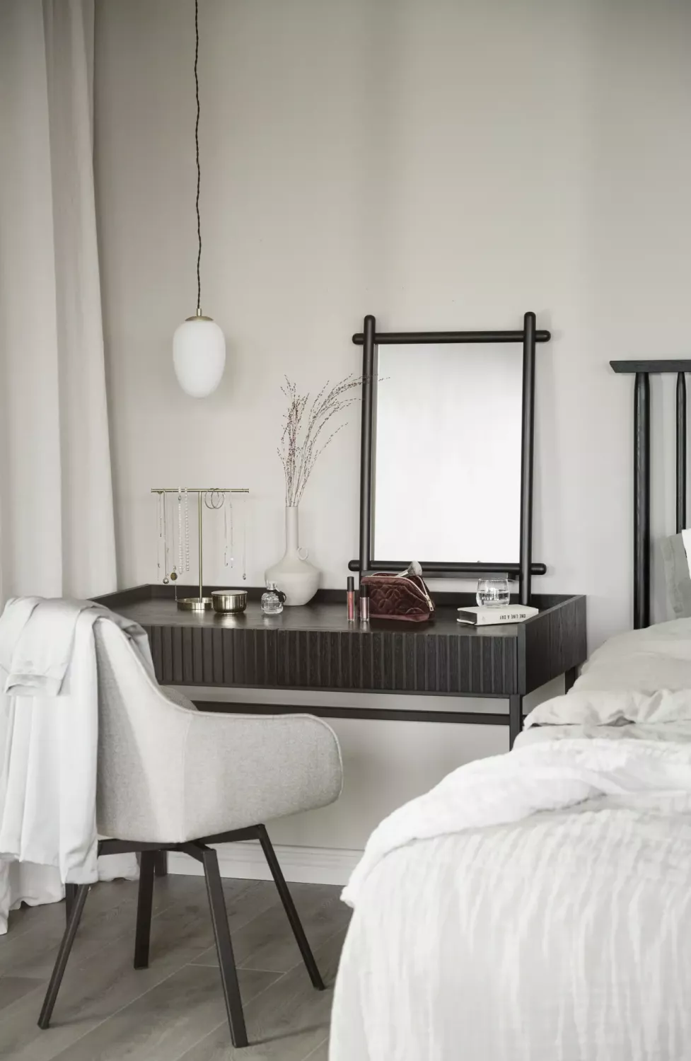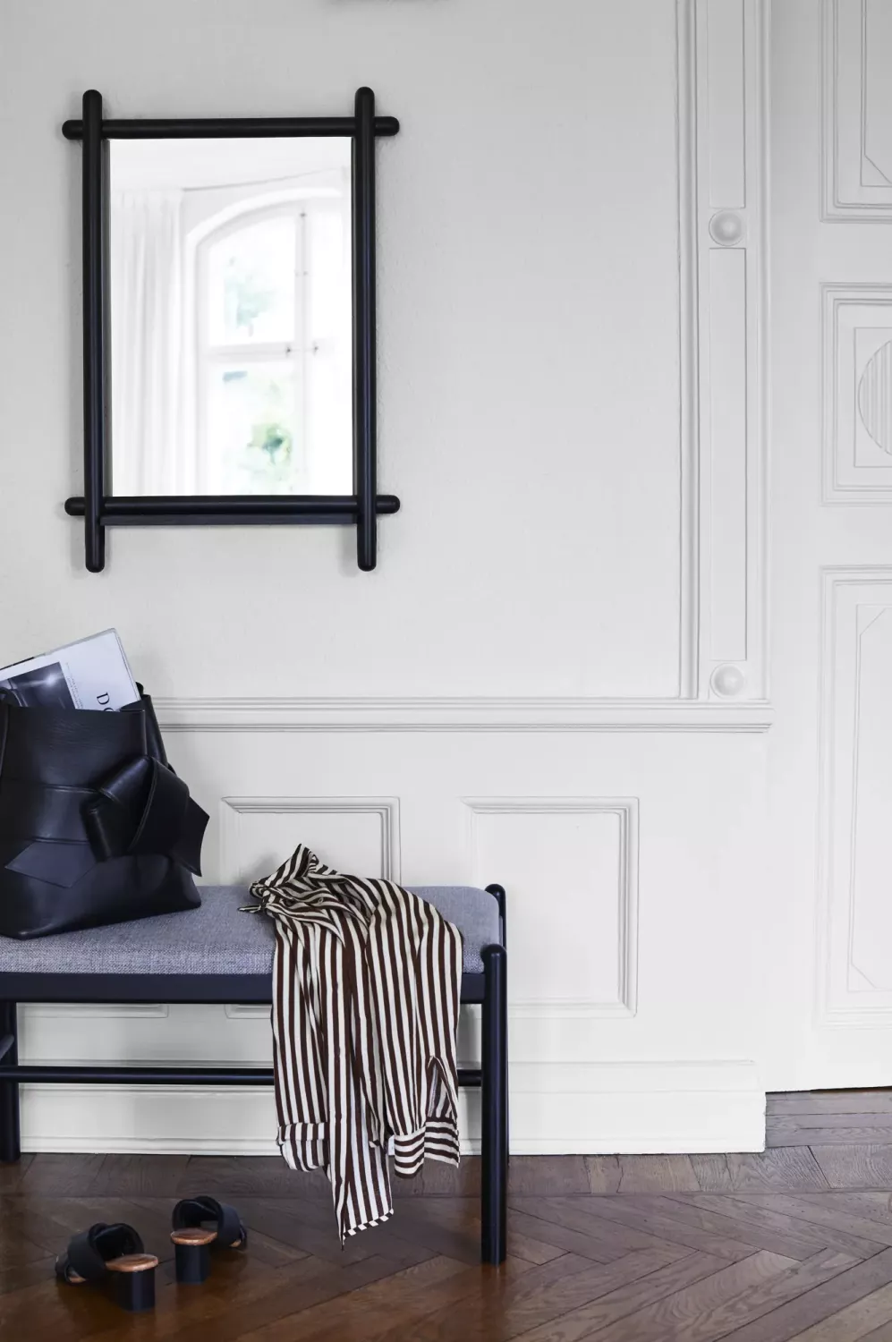 Milford spegel med hylla i vitpigmenterad massiv ek. Passar perfekt i hallen. Milford väggspegel ingår i vår serie Milford och finns i fler färger.
