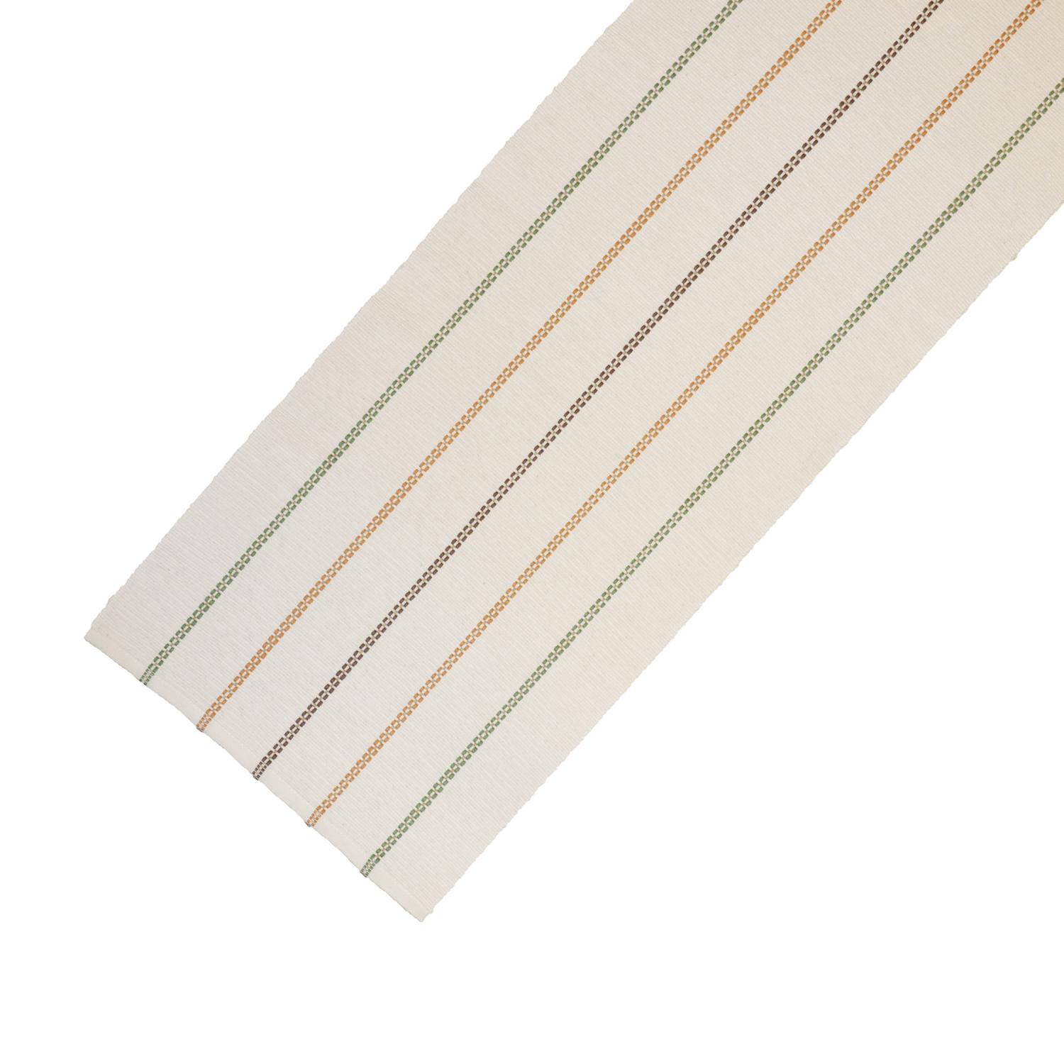 En stilren ripslöpare med randiga detaljer i olika färger så som gul, grön och brun.