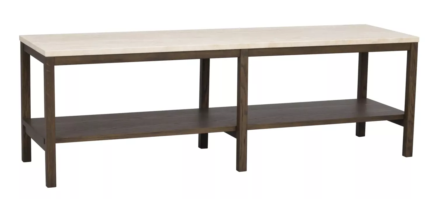 Material: Massiv italiensk travertin sten i toppen, ben och stomme i massiv ek, hyllplan i MDF med ekfanér.
