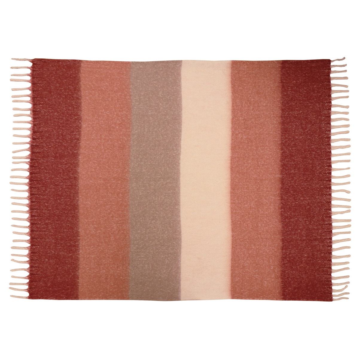 Pläd i mjuk kvalite med stora vågräta ränder med fransar på kortsidorna.