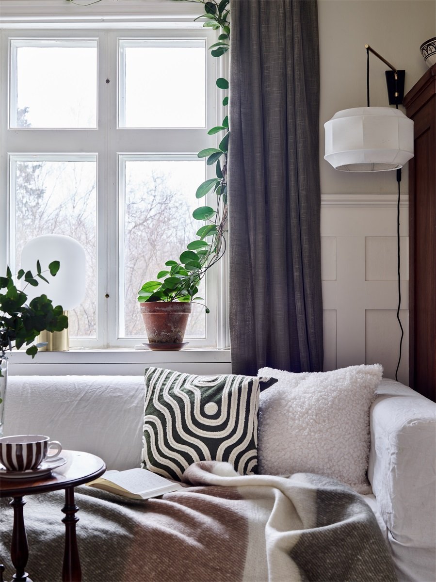 Pläd i mjuk kvalite med stora vågräta ränder med fransar på kortsidorna.
