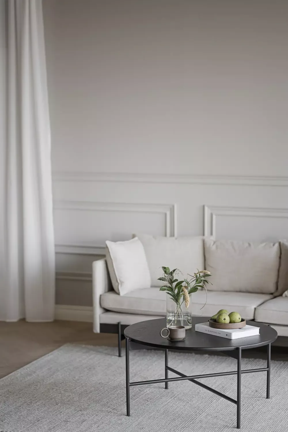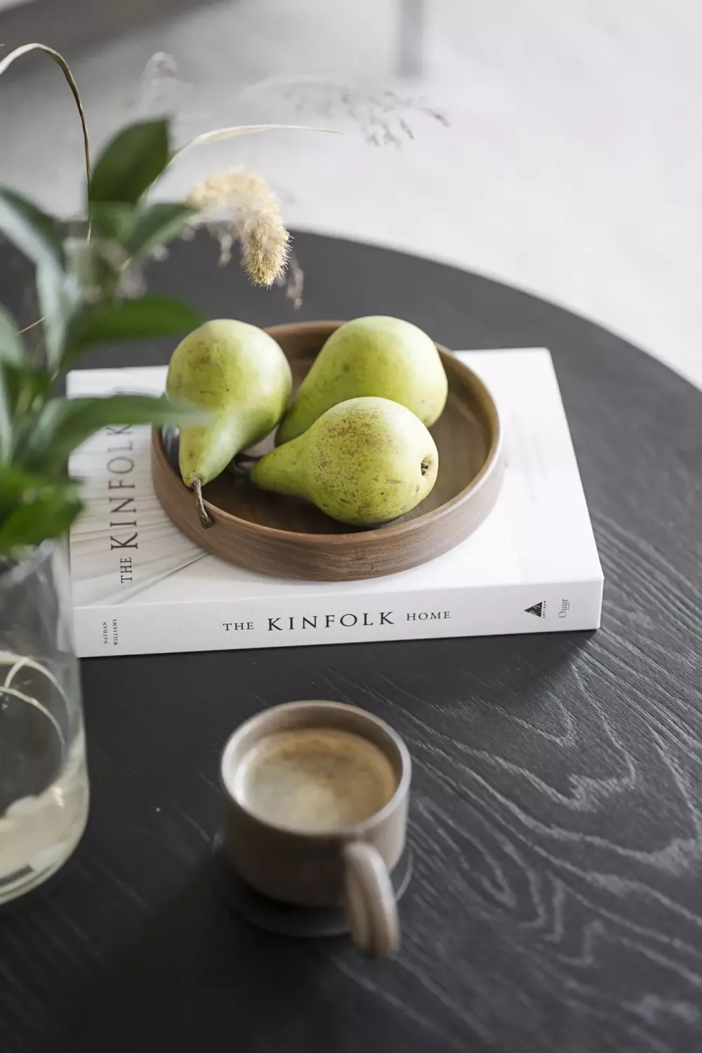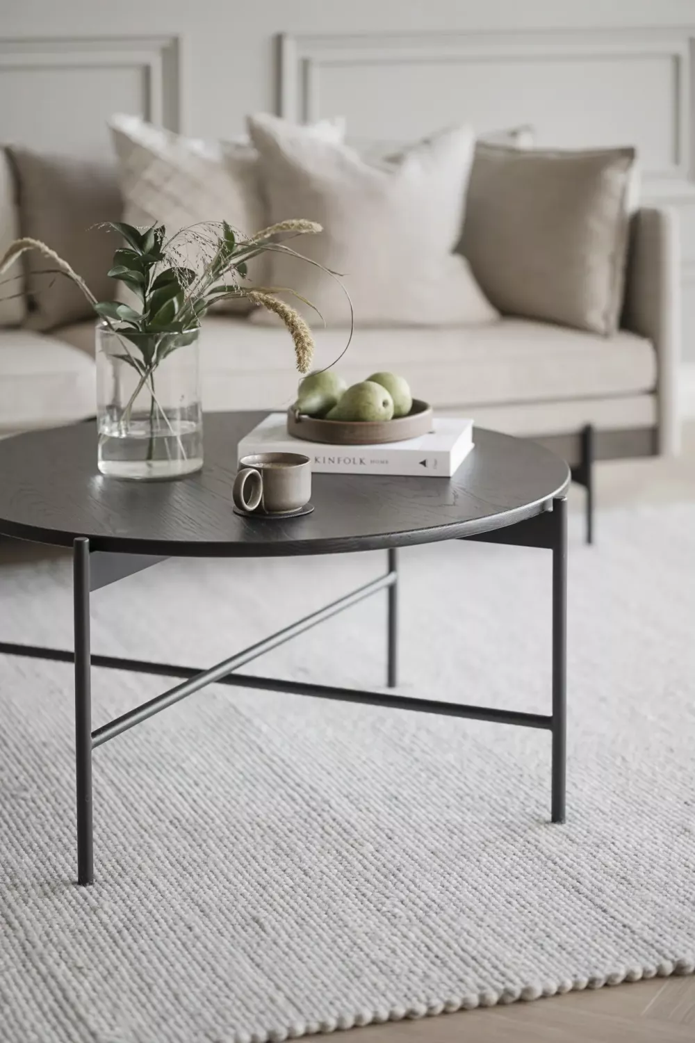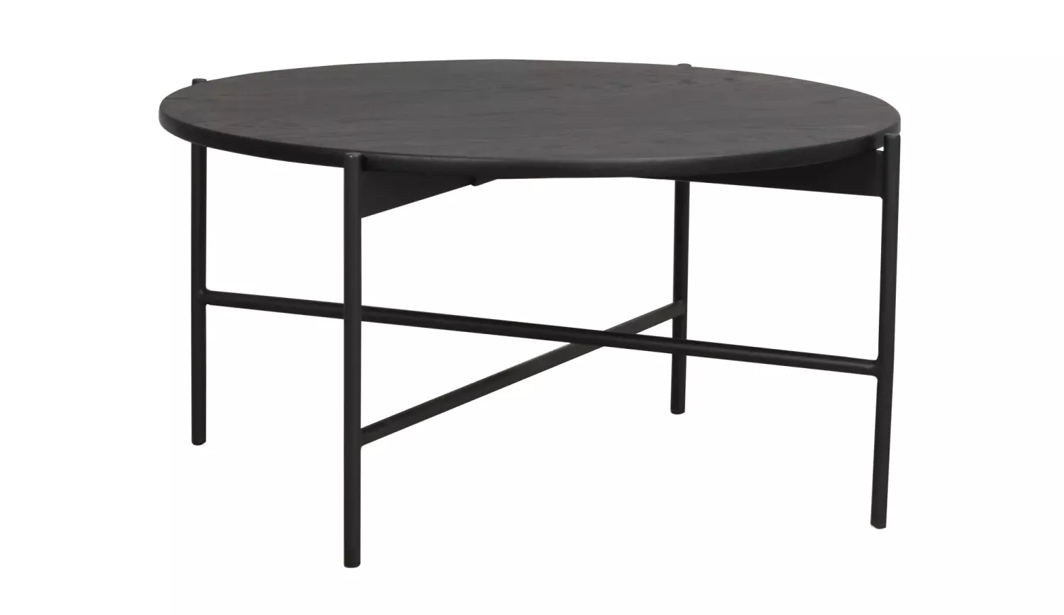Skye har bordsskiva i borstad svartmålad ekfaner och ben i pulverlackerad metall.