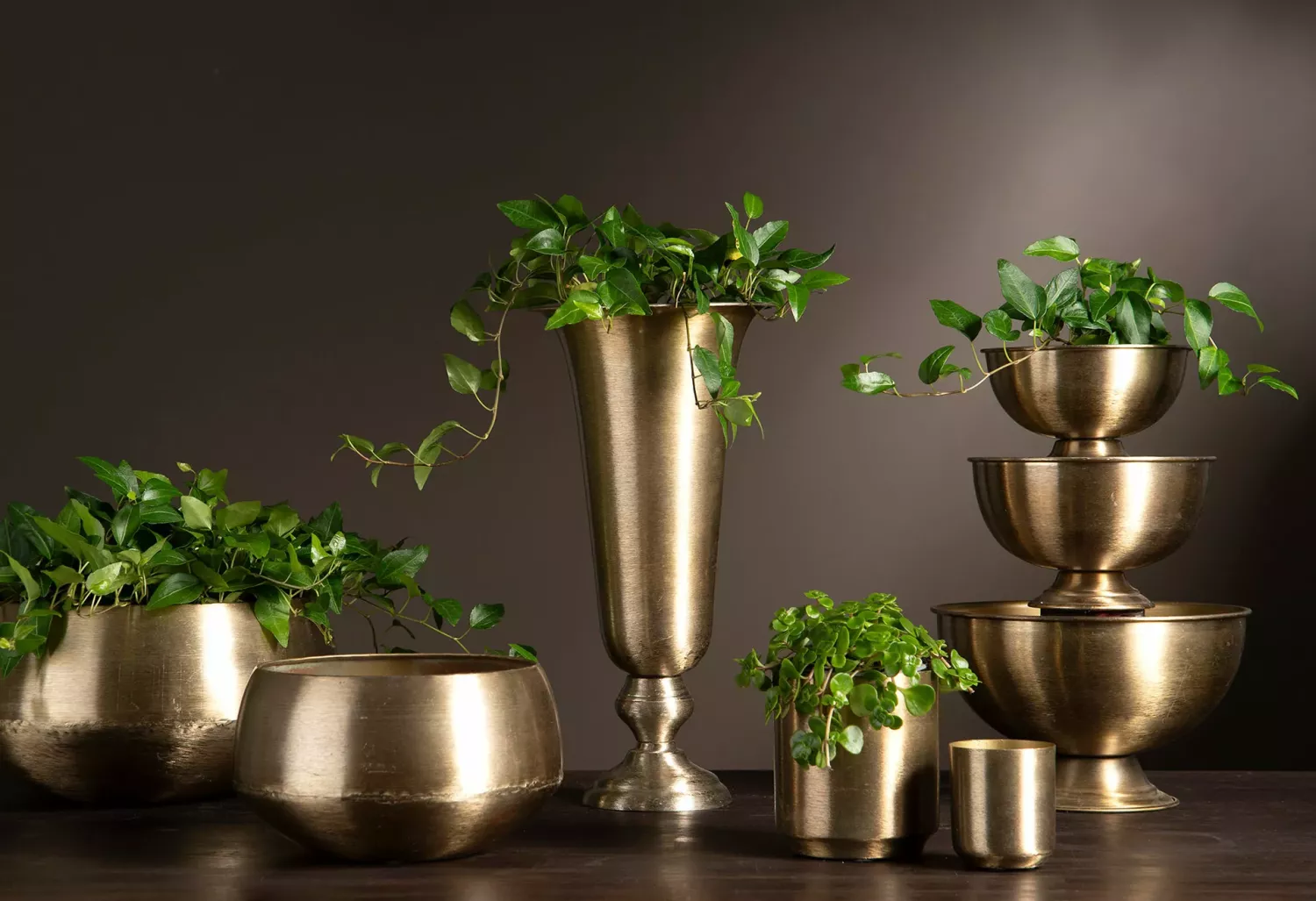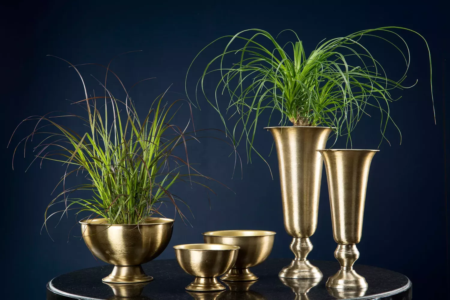 En elegant vas/blomkruka i en stilren utformning av mässing med en borstad yta som ger en unik och modern look.