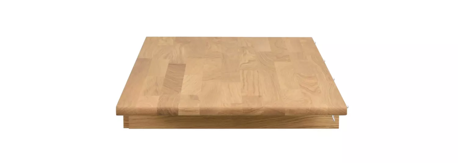 Material: Massiv ek i hela produkten. Skivan i fingerskarvad massiv Europeisk ek, sarg i massiv ek hela längder.