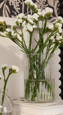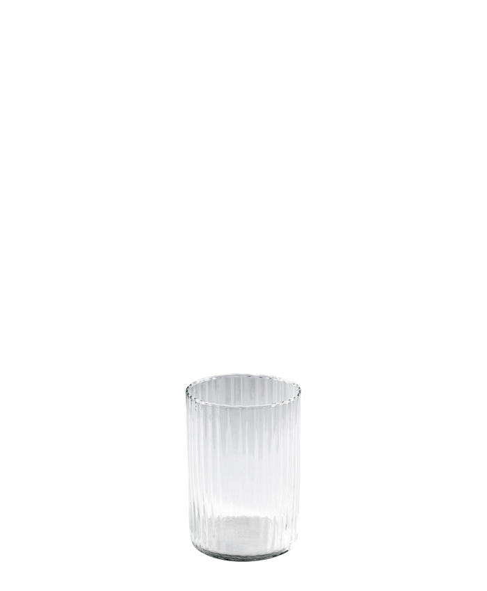 Vackert räfflad vas i klart glas. Perfekt vas till en lägre bukett.