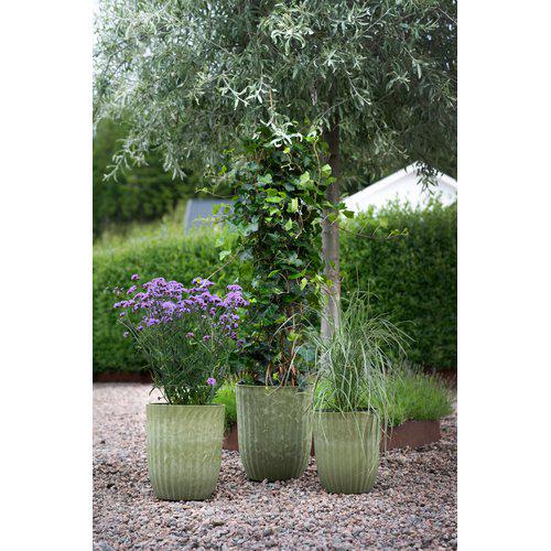 Stilren större kruka i 100% återvunnen plast i en fin grön färg. Perfekt för den större blomman. Passar lika bra inomhus som utomhus. Matcha gärna med de andra storlekarna i likadan färg.